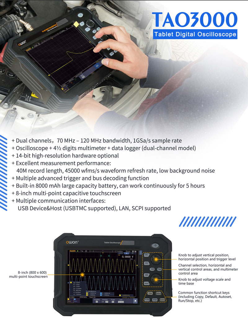 Up to 120MHz bandwidth, 1 GS/s sample rate, Ocilloscope+ 4 1/2 digits multimeter with data logger