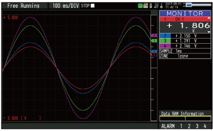 GL980 utilizes simultaneous sampling to eliminate slowdown in sampling rate by using multiple A/D converters in simultaneous sampling method.
